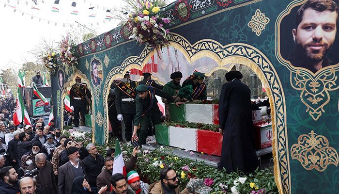 ایران میں جاری مظاہروں کے دوران جھڑپوں میں جاں بحق ہونے والے سکیورٹی اہلکاروں کی نماز جنازہ دارالحکومت تہران میں ادا کی گئی جس میں ہزاروں افراد نے شرکت کی۔