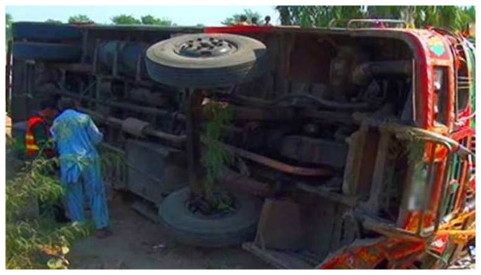 حکام کا کہنا ہےکہ ٹرک پر چارہ لدا ہوا تھا جس میں 12 مزدور سوار تھے، حادثہ تیز رفتاری کے باعث پیش آیا تاہم واقعے کی مزید تحقیقات شروع کردی گئی ہیں۔